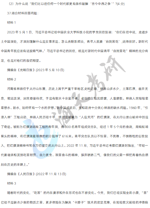 三、材料分析题,第34-38小题,每小题10分,共50分。要求结合所学知识分析材料回答问题