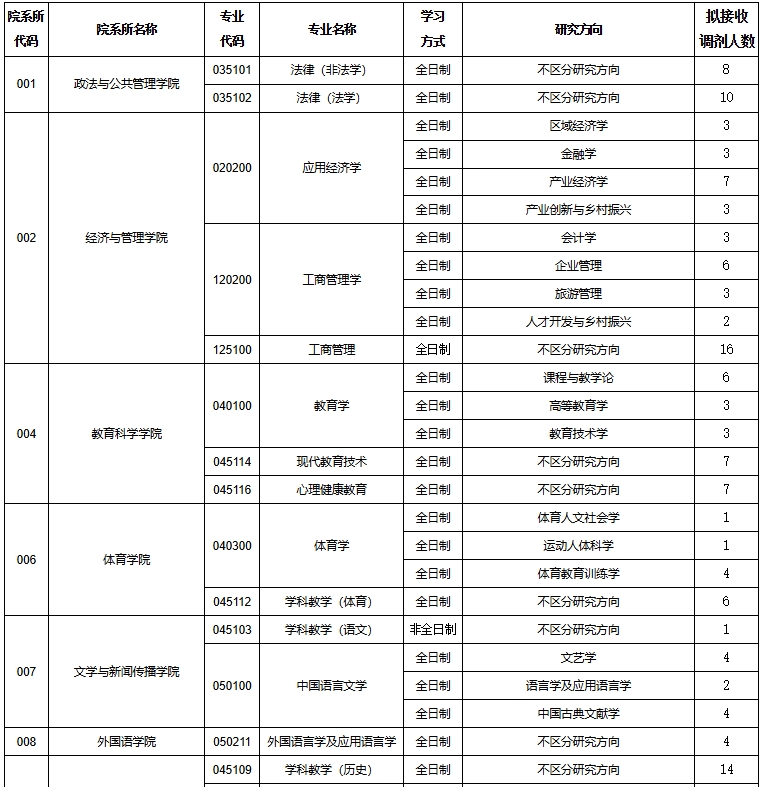 (十二)执行教育部、陕西省规定的其它调剂政策。